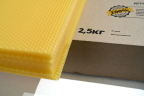 Вощина на рамку «Дадан» у фасовці 5 кг — листи якої мають розмір 410×260 мм, при встановленні в рамку не залишають великих зазорів і не потребують підрізування.