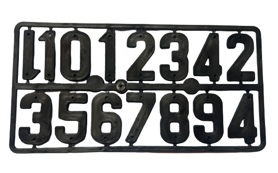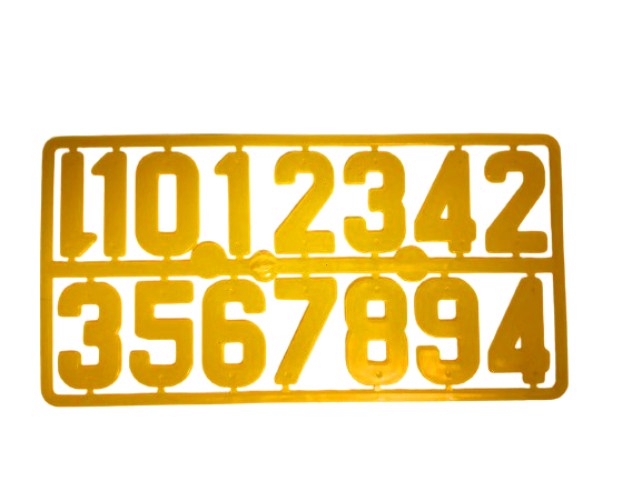 Номери розміщені на пластині, з якої їх можна легко зняти. На одній пластині розміщено 15 цифр: 0- одна, 1 – три, 2 – дві, 3 – три, 4 – дві, 5 – одна, 6 – одна, 7 – одна, 8 – одна, 9 – одна.