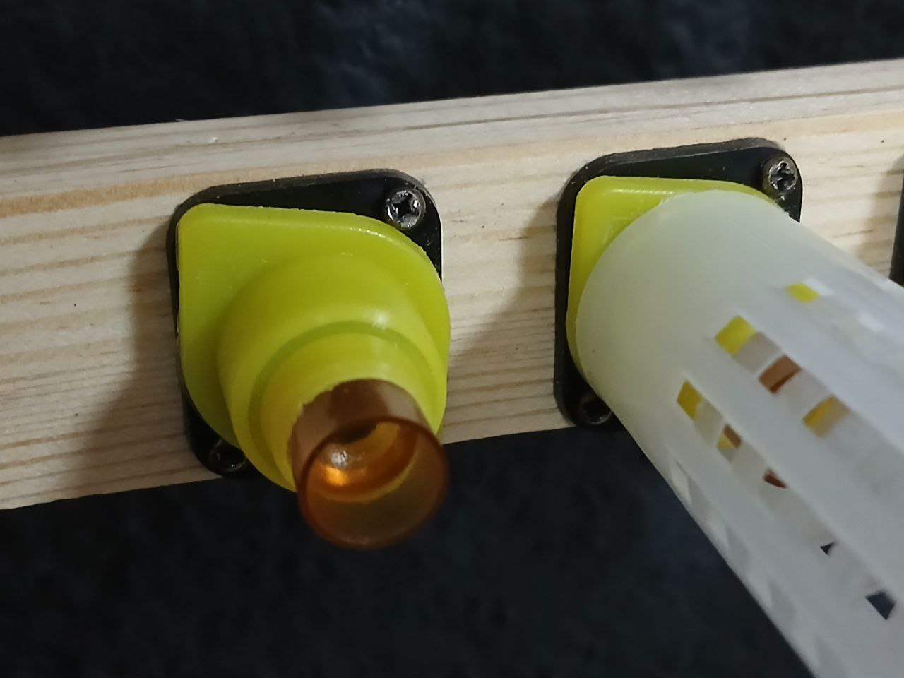 Дві дерев'яні планки, прикручені за допомогою саморізів для зручного провертання планок. Встановлені цоколі, кліточка "бігуді" та мисочки системи аналог Нікот в кількості 10 шт на кожній планці.